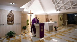 “Se comienza con María, que era la esposa prometida a José: llega el Ángel y le cambia la vida. De virgen será madre. Se prosigue con José, llamado a ser padre de un hijo sin generarlo. Un hijo que – giro inesperado - llega en el momento menos indicado, es decir, cuando María y José eran esposos prometidos y según la Ley no podían vivir juntos. Ante el escándalo, el sentido común de la época invitaba a José a repudiar a María y a salvar su buen nombre, pero él, aun teniendo derecho a hacerlo, sorprendió: para no dañar a María, pensó despedirla en secreto, a costa de perder su reputación. Luego otra sorpresa: Dios en un sueño cambia sus planes y le pide que se lleve a María con él. Nacido Jesús, cuando tenía sus proyectos para la familia, todavía en un sueño se le dice que se levante y se vaya a Egipto. En resumen, la Navidad trae cambios de vida inesperados. Y si queremos vivir la Navidad tenemos que abrir el corazón y estar abiertos a la sorpresa, es decir, a un cambio de vida inesperado”.