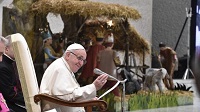 “Procuremos no mundanizar la Navidad, ni convertirla en una bonita fiesta tradicional pero centrada en nosotros y no en Jesús. Celebraremos la Navidad si sabemos dedicar tiempo al silencio, como hizo José; si le decimos a Dios ‘aquí estoy’, como María; si salimos de nosotros mismos para ir al encuentro de Jesús, como los pastores; si no nos dejamos cegar por el brillo de luces artificiales, de regalos y comidas, y en cambio ayudamos a alguien que pasa necesidad, porque Dios se hizo pobre en Navidad”.