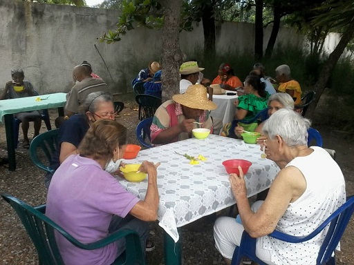 Pues nuestra obra social en referencia a los abuelos estaba decaída, pues la situación por la pandemia y el encierro por normas sanitarias lo estaban impidiendo. Pero nos pudimos reunir y en oración viendo las mesas vacías al igual que los platos, rogamos a Dios nos ayudara, pues con su presencia se solventaría todo. Hicimos la misa y con fe dejamos en las manos de Dios todo. En equipo hicimos una pequeña planificación y decidimos el próximo sábado invitar a un encuentro a los abuelitos. 25 en total.