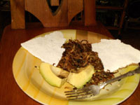 Por lo general se trabajo saldado, para ello se coloca la pieza en agua de sal (en remojo) Se desala. Y e lleva a un aolla con agua y se salcocha. Se desmecha y se lleva a un caldero con Luego un picadillo (muy fino) de cebolla, ajo, pimentón, ají dulce y se sofríe. Se debe dejar bien seco. Se acompaña con casabe y aguacate. |