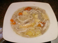 Se limpia bien las pechugas y se colocan en un recipienbte a cocinar con cebolla, pimentones rojos, ajo y sufieciente agua. Cuando estén semi blandas se coloca al caldo las papas picadas en trozos medianos. Y al estar blandas se sacan y se desmenuzan o se saca en forma de mechas. Se termina de cocinas agregando sal, pimienta y arepa amarilla picada en pedacitos.