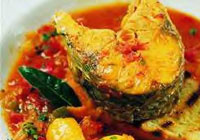 Limpiar el pescado, tirar la cabeza y la cola. Cortarlo en rodajas. Las papas se pelan y se cortan en rodajas finas. Cortar las cebollas, los tomates, los pimentones en rodajas finas. En una olla de fondo grueso cubrir el fondo con aceite y cuando esté este bien caliente, se doran las rodajas de cebolla y de pimentón y luego se apartan. Después manteniendo el fuego siempre a mínimo en el fondo se agrega una capa de rodajas de papas.