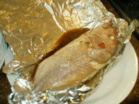 Se lava bien y se escurre el pargo. Abierto por el centro se le agrega sal, pimienta, unas ramitas de perejil, vino y aceite de oliva. Se envuelve con papel de aluminio y se lleva al horno por 20 minutos a fuego moderado. Se destapa y revisa. Se debe servir envuelto para que el comensal descubra el olor y el sabor.