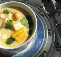 Añade el maíz en crema y el maíz dulce. Incorpora la gallina y el queso en cubos. Deja cocinar por unos minutos sin dejarlo hervir. Retira la olla del fuego y añade la crema de batir. Decora con hojitas de cilantro.. |