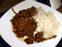 Picamos en trozos pequeños el ovejo y lo lavamos con vinagre y le damos una hervida suave con hojitas de guayaba. Botamos esa agua y lo colocamos en un picadillo de cebolla, ajo, cebollín, ajo porro, perejil, cilantro, hojas de laurel, orégano, aceite de oliva , sal, pimienta y vino tinto. Después de un tiempo prudente se lleva al fuego y se le da cocimiento a fuego alto hasta que vaya ablandando. Se acompaña con arroz.