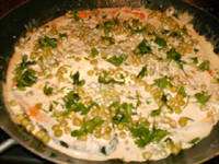 El Salmón, pescado de aguas muy frías y poderosamente repleto de Omega 3 se toma y se limpia y se corta de filet. Se deja dormir en una mezcla de limón, pimienta, sal, mostaza y aceite de oliva. Se coloca en el fuego un sartén de teflón, al calentarse se coloca el pescado y se deja medio dorar, por los dos lados. Luego se le agrega crema de leche, arbejas tiernas, perejil y se deja cocinar a fuego lento.