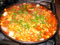 Los langostinos se limpian y recuerden que en la parte central superior está su tubo digestivo que hay que quitar . Además, lo pelamos todo. Aparte se toman tomates bien maduros que se pasan por agua caliente para quitarle con facilidad la concha. Se quitan también las semillas. Se pica en trozos pequeños. En un sartén se coloca aceite y se pone a marchitar cebolla, ajo. Luego se le agrega el tomate. Cuando todo esté bien sofrito, Se le coloca un vasito de vino blanco, hojitas de laurel, sal, pimienta y se deja cocinar a fuego lento. Al cabo de un buen tiempo se le agregan los langostinos y suficiente perejil con guisantes. |