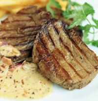 Sazonamos los solomillos con una mezcla de sal, pimienta y mostaza. Dejamos reposar. Limpiamos los champiñones y los cortamos en láminas. En un sartén colocamos mantequilla con un poquito de aceite y doramos los solomillos. Al tomar color le rociamos un poco de vino y se añaden los champiñones. Por último, incorporamos perejil picado y dejamos cocer entre 8 y 10 minutos a fuego suave, dándoles la vuelta para que se hagan por ambos lados. |