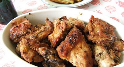 Picamos en trozos el conejo y lo dejamos un rato en vinagre con hojas de guayaba. Escurrimos y lo doramos. Sacamos el conejo y en la misma fuente colocamos cebolla y dos cabezas de ajo sin pelar y partidos por la mitad. Regresamos el conejo, sal, tomillo. Vino blanco y dejamos cocer a fuego lento y hacemos ahí mismo una especie de salsa oscura.