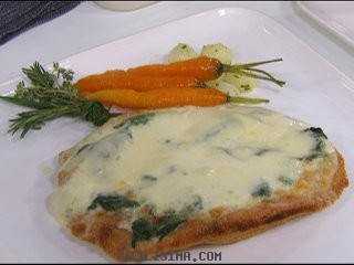 Hay que abrir las pechugas como filetes. Condimentarlas con sal y pimienta. Aparte se bate los huevos con el perejil picado y pasa por allí las pechugas. Hacer una mezcla miga de pan, harina y pan rallado y también pasar por ahí las pechugas. Se fríen cada pechuga en aceite bien caliente y reserva. Se corta el queso mozzarella en rodajas finas y se coloca encima de la pechuga. Se lleva al horno por cinco minutos.