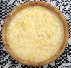 Llevar al fuego la leche con la canela y el azúcar. Al hervir agregar las yemas batidas y maicena disuelta en leche. Mover constantemente hasta espesar. Agregar el maíz ya molido (crema) al dar el hervor apagar y espolvorear con canela y servir. |